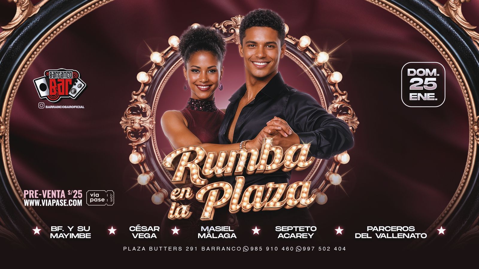 HomeNovedades Rumba en la Plaza - Domingo 25 Enero 2026 - Barranco Bar Rumba en la Plaza – Domingo 25 Enero 2026 – Barranco Bar PREV Charanga Habanera – Sábado 24 Enero 2026 – Centro de Convenciones Plaza Butters 19 de enero de 2026 NEXT SALSA SENSACIONAL – Sábado 31 de Enero – Casa de la Salsa 25 de enero de 2026