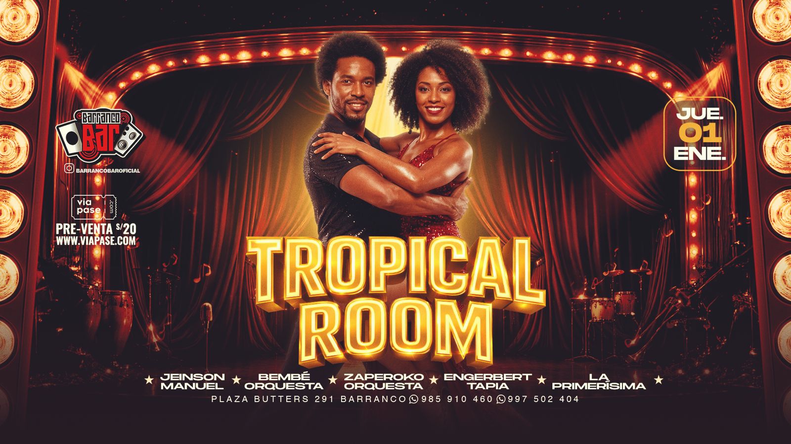 HomeNovedades Tropical Room - Jueves 01 Enero 2026 - Barranco Bar Tropical Room – Jueves 01 Enero 2026 – Barranco Bar PREV QUÉ TAL RUMBA – Sábado 03 de Enero – Casa de la Salsa 28 de diciembre de 2025 NEXT Una Noche de Salsa – Sábado 03 Enero 2026 – Centro de Convenciones Plaza Butters 29 de diciembre de 2025